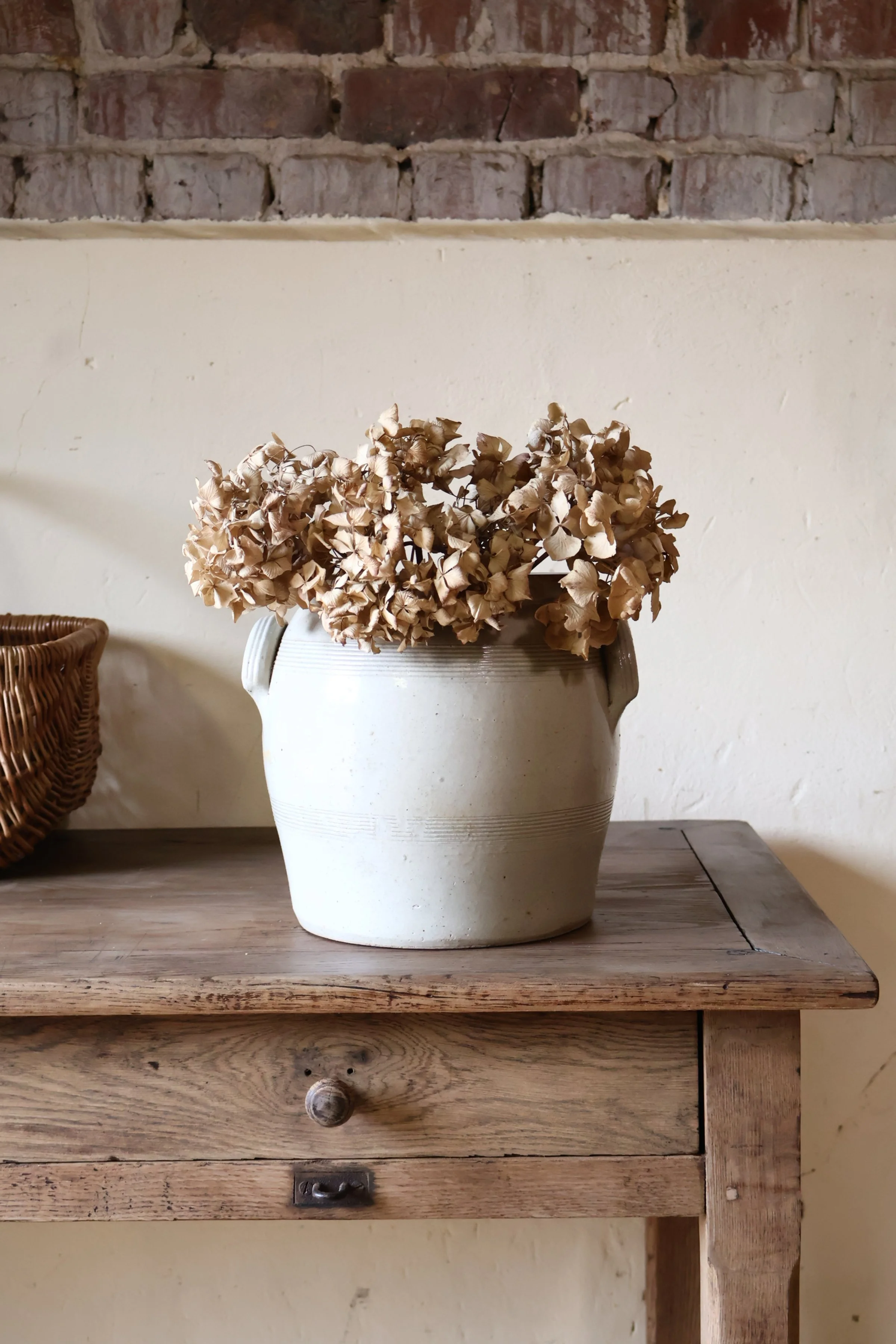 Grand pot à graisse en grès marron, au charme authentique et chaleureux. Sa belle couleur terre et sa patine naturelle lui confèrent un vrai cachet d’antan.